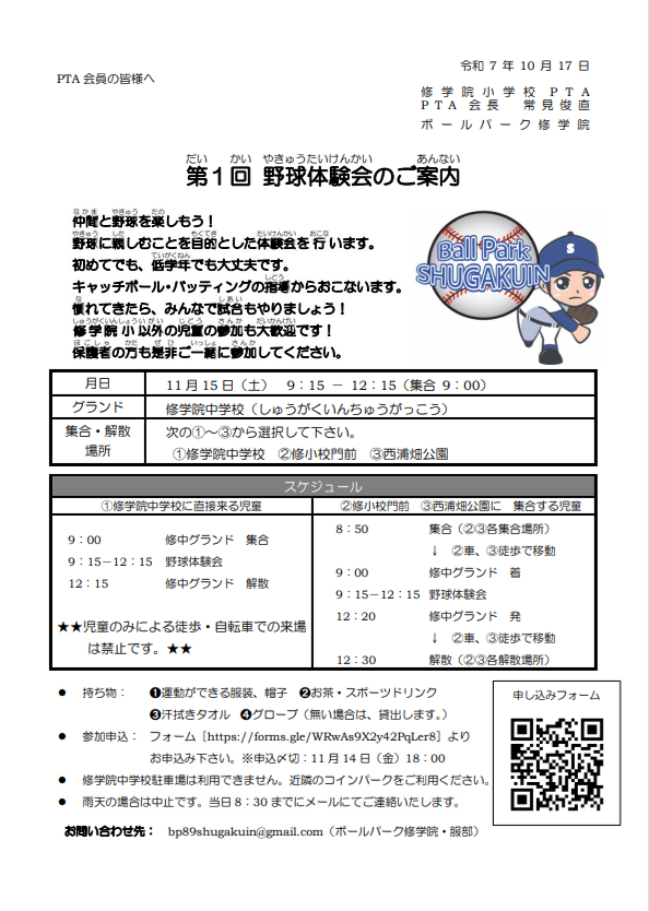 [ボールパーク修学院] 野球体験会(やきゅうたいけんかい)